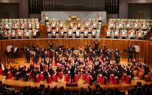 由苏州民族管弦乐团委约著名作曲家唐建平作曲、作家葛逊作词的民族管弦乐《江河湖海颂》,自诞生以来已在多地成功上演。著名指挥家彭家鹏带领苏州民族管弦乐团将这首当代鸿篇巨制的璀璨光彩展现得淋漓尽致。作品产生了广泛影响,曾获选文化和旅游部2022—2023年度“时代交响”创作扶持计划重点扶持作品,先后两次参加中宣部文艺局、文化和旅游部艺术司、中国音协“时代交响”全国优秀乐团邀请展演等。