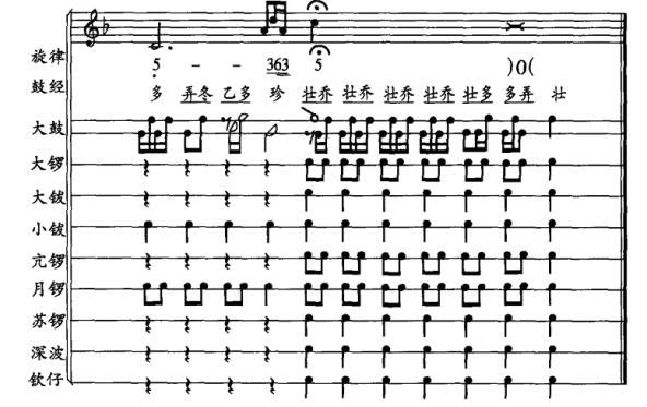 摘要:《抛网捕鱼》是潮州大锣鼓的经典曲目,该曲蕴含着潮汕的渔民生活与海洋文化。本文从音乐形态之美、板式之美、记谱之美以及“和”的美学精神来展开研究,分析其曲式、板式与记谱之美,例如“轻三六调”“主中有客,客中有主”的板式等;并从唢呐的形制演变、合奏的“利他”思想来体现“和”的美学精神,探究潮州大锣鼓的美学追求。