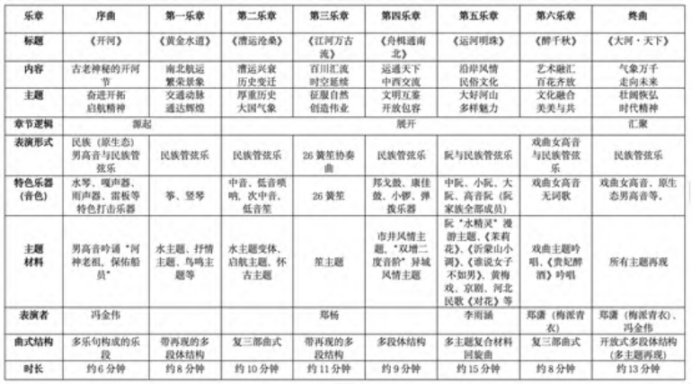 表1民族交响诗套曲《大运河》音乐结构
