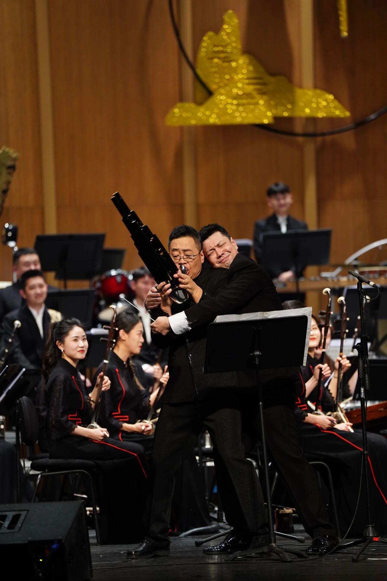 这份对传统的坚守与对创新的审慎,恰是他学笙时期便养成的品质。文佳良评价他“对传统音乐的把握超乎想象,对现代音乐的涉猎又格外珍贵”,这种特质让他在指挥中始终能找准平衡。在孙鹏看来,民乐的核心魅力在于“神韵”,在于“留白”中的想象空间,在于乐器特有的音色质感。“指挥《二泉映月》,不能只追求技巧的完美,而是要传递阿炳那份深沉的生命感悟;演绎《赛马》,既要展现磅礴气势,也要保留民乐的灵动韵味。”他强调,指挥家作为桥梁,既要理解作曲家的创作意图,也要懂得演奏员的表达逻辑,更要让观众听懂音乐背后的文化故事。