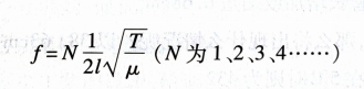 弦乐器类的频率如果不考虑其他偶然性的因素,那么其频率高低的决定性因素有三:1.弦的长度"I"。2.弦的线密度即单位长度内的弦的质量"μ"。3.弦的张力"T"。其频率公式为: