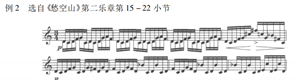 例2为第二乐章中出现的由循环呼吸技术演奏的音乐片段,由十六分音符构成的音型在