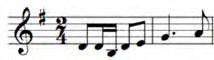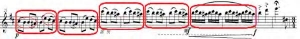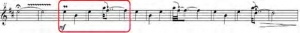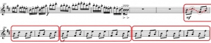 谱例6第一乐段第一乐句与第三乐句中的“三音动机”