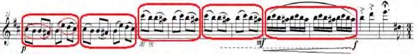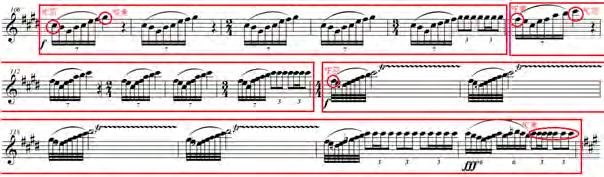 第二乐段自97~105小节为9小节的乐段尾声,随后是为第三乐段。