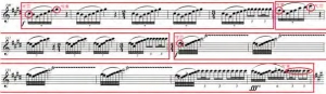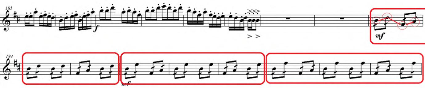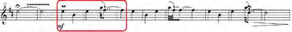 谱例7第一乐段第五乐句中的“折线动机”与“三音动机”