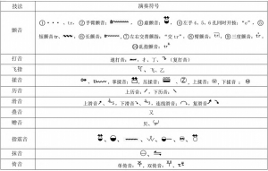”所替代;打音符号可考察到的较早形态为“扌”,现今打音演奏技法也常使用符号“丁”来标记。笔者认为这些演奏符号被替代的主要原因是,新的演奏符号与原演奏符号相比更为简洁,且指代的含义非常明确,不存在理解上的歧义。