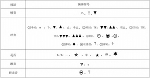 常用的唇舌类技法演奏符号一览表如下所示(表3)。