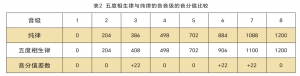 从表1还可以看出一个规律:五度相生律与十二平均律的音高差在大音阶中呈现出一种递进关系。即:五度相生律大音阶的四级音, 比十二平均律大音阶的四级音低2音分;五级音高2音分;二级音高4音分;六级音高6音分;三级音高8音分;七级音高10音分。这一规律的本质在于两种律制的五度音程存在固有差值, 由于平均律的五度相生按照这种连续五度关系的次序递减2音分,从而形成了音阶上各音级2、4、6、8、10音分的规律性偏差。