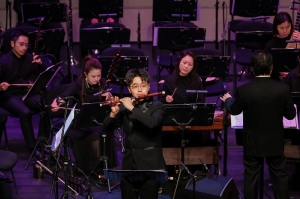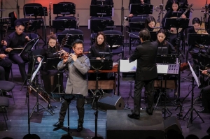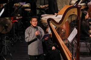 指挥家张列深耕民族管弦乐指挥多年,对乐队音色的打磨、音乐气韵的拿捏从容老到、精妙入微。 面对吹管柔婉、敲击刚健的特殊编制,他调度从容、取舍有度,让两大声部各展所长又和谐共生,让每一段旋律、每一个节奏都精准抵达人心。 其创作并执棒的《黄河之水天上来》气势磅礴,竹笛的轻盈、唢呐的豪放、笙的混响交相和鸣,如江河奔涌,跃动的鼓点似惊涛拍岸,吹管的旋律线条与敲击的节奏浪潮相互推动,将黄河的奔腾气势与华夏山河的壮阔雄姿演绎得淋漓尽致。