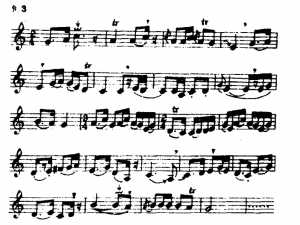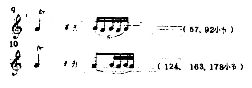 2.颤音(tr)的实际应用:由于乐曲情绪上细致微妙的变化,则要求颤音的手法在节奏和速度上有多种变化。切忌一律要求快而密的效果,这样不但破坏了旋律的进行,甚至会喧宾夺主。