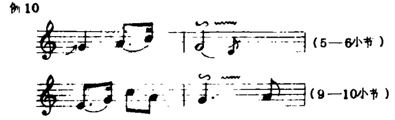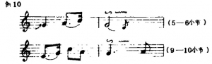 (2)在二拍音中,第一拍不揉,第二拍揉,使乐曲情绪由不稳定进行到稳定。如例10: