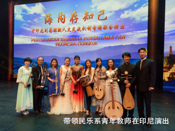 的平台。上任伊始,姜克美接到了出访演出任务—一赴印尼首都雅加达参加"海内存知己"——两国副总理及人文交流机制专场联合演出活动。姜克美率领民乐系年轻的教师队伍一道前往印尼。她除了独奏外,还和乐队成员一起与印尼的艺术家联袂演奏了印尼作品《哎呦妈妈》,演出受到中印两国领导人和观众的高度赞誉。这是哈尔滨音乐学院成立以来第一支出访演出的乐团,也是哈尔滨音乐学院在国际舞台上的首次正式亮相。回国后她带着部分青年教师又马上参加了在人民大会堂举行的“中国共产党和世界政党高层对话会文艺演出”,为世界120多个国家政要进行了精彩的表演,开启了哈尔滨音乐学院实践演出活动的新篇章。