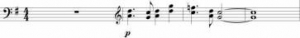 华彩段落不仅展现了作曲家对音乐材料的精心编排,也对演奏者提出了较高的技术性与表现力的要求。此外,华彩段落没有明确的拍号及速度标识,这给予演奏者极大的二度创作空间,但这需基于作者在谱面所提供的信息之上。(参见谱例3-5)