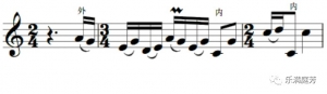 [29] 同上。“透波音”:第一把位按食指前先快速闪过空弦音,是孙文明将“江南丝竹”中的透音及波音奏法巧妙地结合。