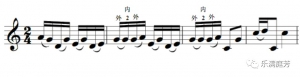谱例15《弹乐》11-14小节(吴赣伯记谱)