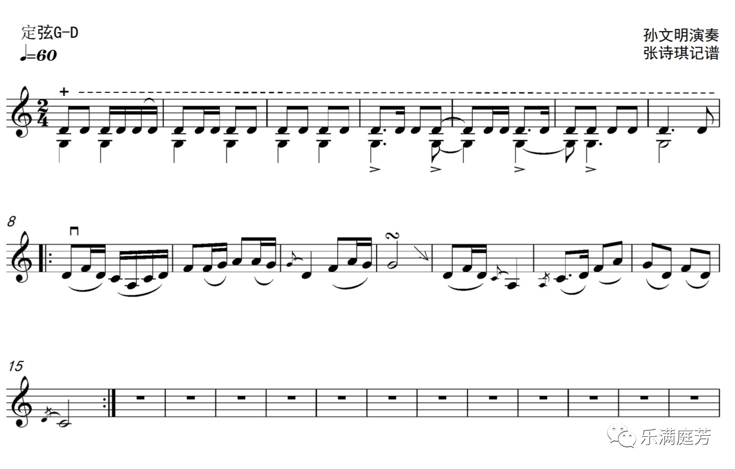 [27] 孙文明作品的扩指包括:1.多用于京胡演奏的三指代四指;2.第三把位一至四指间为小六度。