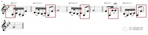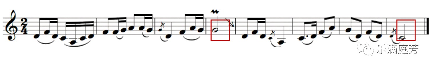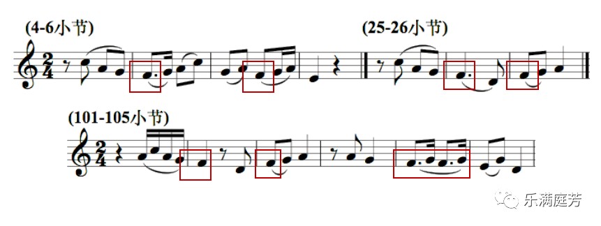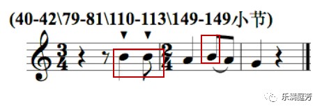 乐段开头、结尾都由十分固定的音型构成:合头(短小音型)+即兴变奏(加花、扩充)+合尾