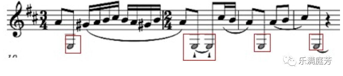 在同音重复时均使用“同音异弦”或“同音异指”的奏法。