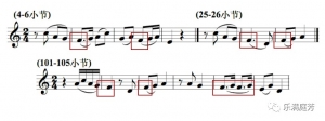 旋法:《弹乐》在结构上也许与《三六》有一定关系,可是更多地运用了江南丝竹中的加花、连锁等旋法使旋律发展。
