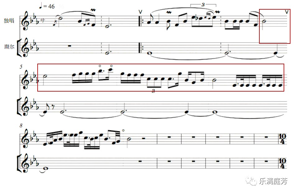 谱例9《潇湘夜雨》(朱雪琴演唱)第5、6小节