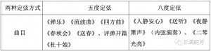 在林心铭老师的《关于孙文明的二胡演奏特点》[24],以及周皓先生的《深切怀念杰出的民间音乐家孙文明先生》[25]中已有对孙文明胡琴曲定弦的详细记录。笔者将其大致划分为两种定弦方式,分别为“五度定弦”与“八度定弦”,如表格11: