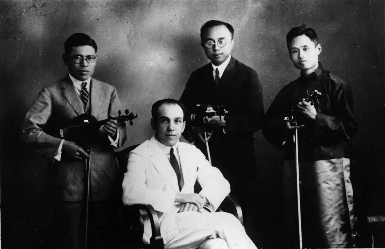刘天华(后排中)与他的小提琴教师托诺夫合影