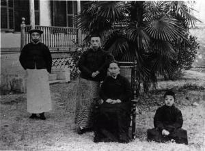 刘天华(左一)、刘半农(左二)及夫人朱惠、刘北茂(右一)合影