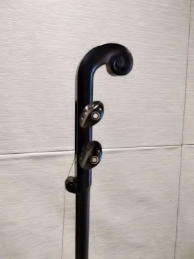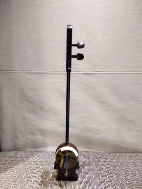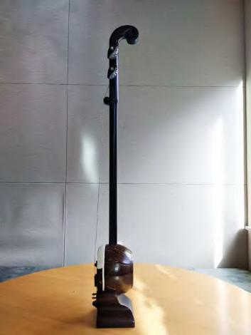 (三)较之二胡,和琴摒弃了线扎千斤,从而使结构稳定。摒弃了线扎千斤之后的弦枕是整体设计的琴头,与上方大螺旋呼应的是下方的小螺旋,这种结构设计的确是匠心高妙,其造型也使和琴具有了典雅之美。