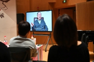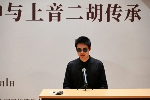 作为学生代表,上海音乐学院民乐系本科生马成从自身学习经历出发,阐述了闵惠芬艺术理念在其音乐认知形成过程中所产生的深刻影响。因视力障碍,他主要依赖聆听建立对二胡声音的整体感知,这使他在学习早期便体会到,模仿不应停留于手型或音准的表层层面,而需在声音质量与作品情绪风格的把握中理解演奏的精髓。