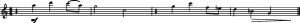 第二二胡上行四度级进下行,后两小节下二度模进并保持了下行级进的持续,这是英雄叹息的音调、对前途渺茫的失落和两人终不能厮守的哀伤。然而,当观察第一高胡的回应声部时,可以发现,同样是上四度进行开始,呼应了英雄声部,继续了同一个话题,而紧接着却是六度、七度、八度的迂回跳进,总体方向持续向上进行,这不是叹息,而是掷地有声、语重心长的倾诉,她在安慰并鼓舞着英雄音调的叹息。随后两把胡琴唱出了一句共同的主题,二人将共度时艰。