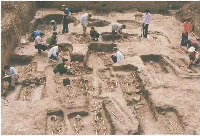 贾湖遗址是中国新石器时代前期重要遗址之一。1983—1987年,河南省文物考古研究所在河南省舞阳县贾湖遗址进行了前六次发掘(见图2)2001年春和2013年秋,中国科学技术大学与河南省文物考古研究所(院)又在此联合进行第七、第八次多学科综合考古发掘。前八次考古发掘面积约三千平方米,发现新石器时代前期房址五十多座,窖穴五百多座,陶窑十多座,墓葬五百多座,瓮棺葬三十多座,埋狗坑十多座,出土陶、石、骨等各种质料的文物约五千余件以及大量动、植物遗骸,基本上廓清了该遗址的文化内涵。②贾湖遗址重要的发现有中国最早的甲骨契刻符号③、中国最早的家猪和家狗⑨、中国最早的稻作农业遗存⑤及含酒精饮料⑥等等,其中最引人关注的遗物之一当属出土的几十支骨管。