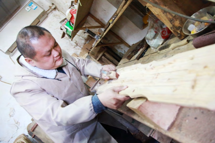 扬州街上有一条狭窄的巷子叫仁丰里,巷子深处有一家制作古筝、古琴的作坊名为“永乐琴坊”,许昌武就是永乐琴坊的主人。