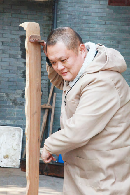 为了寻觅良材,多少斫琴人在四处奔波。许昌武也曾四处淘换老料,收到心仪的老木头后他会欣喜若狂。在他的仓库里,储藏了大量从江南多地搜集来的百余年的老房梁,这些老木头在斫琴人眼里是上等的斫琴材料。许昌武是一个有远见卓识和经济头脑的人,十几年前,他就到溧阳、宜兴、苏州等地购买经年的老料。他说,这种老房梁能够达到二十公分以上,极适合制作古琴。他还收到过四十多公分宽的材料,甚至还收到过11根明代老寺庙的材料,直径五十公分宽,长度八米左右,这些珍贵的材料极为罕见。