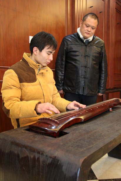 谈起古琴,许昌武称自己斫琴具备很多优势,因为从事古筝制作,触类旁通,另外在著名琴家刘洋、陶艺的影响下,他有机会鉴赏了很多老琴,聆听老琴的声音,观察老琴的槽腹,对古琴的审美意识和音色追求逐渐形成。