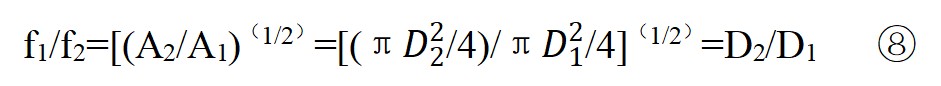 所以 f1/f2=[(A2/A1) (F1/F2)(1/2)⑦