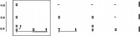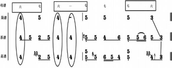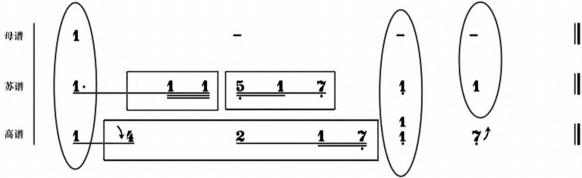 通过对高谱、苏谱的比较,笔者认为在同一旋律框架下,高谱、苏谱相对于母谱来说节奏型与音高均发生变化。