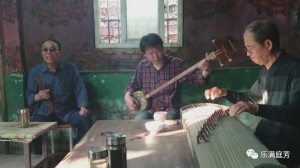 图2 大调曲子弹唱(从左至右:马庆萌、宋涛、宋光生)