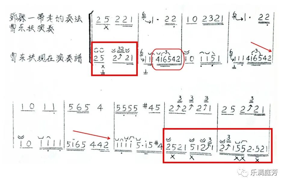 谱例5 河南筝曲《思情》第1-9小节[27]邓县老奏法与曹东扶传谱对比
