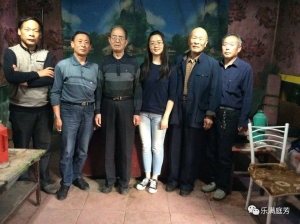 2015年5月6日作者赴河南邓州采访马国敏茶馆弹唱大调曲子民间乐人并合影