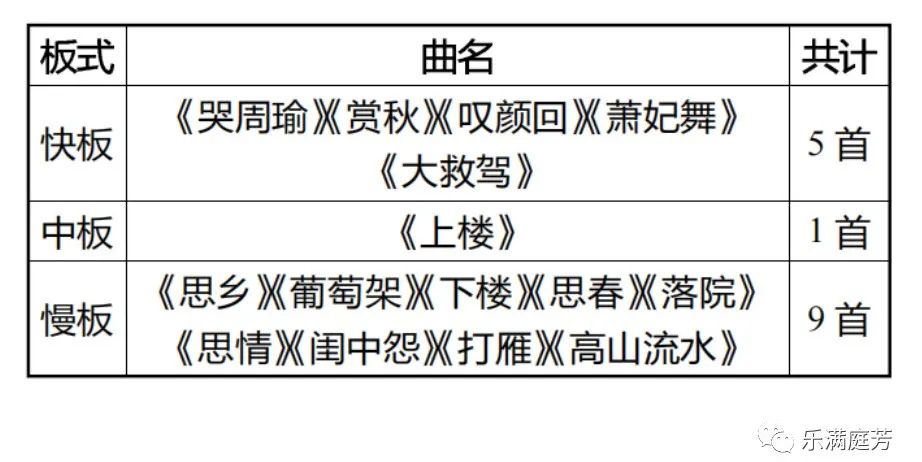 表3 《河南曲子板头曲选》筝曲板式统计表