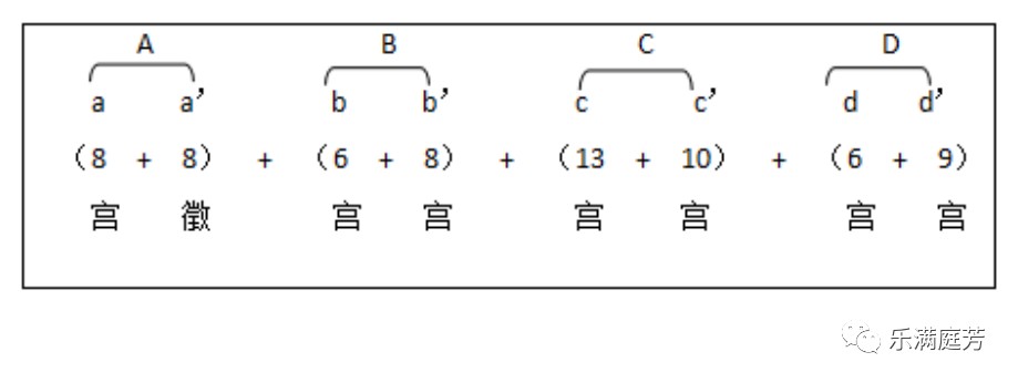 如果说【八板】为河南筝曲打造出了一副凝练坚实的结构力筋骨,那么脱离于大调曲子旋法特征的,以宫音主导、围绕“宫、徵、商”三个核心音进行的典型旋法特征则为河南筝曲的旋法规则谱写了框架,即在大调曲子核心音旋法特征的基础之上,衍生为河南筝曲中的固定搭尾并派生出慢板筝曲核心音旋律体系。