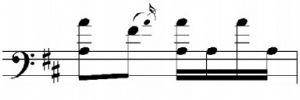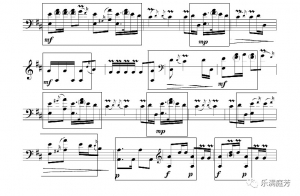的形式,c句落在了深沉的低八度音区,并在节奏上进行了变化