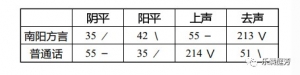 表5 普通话及南阳方言语言调值表