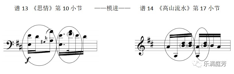 在河南筝曲中,常见的四度跳进往往在re-sol、sol-re与sol-do、do-sol两种类型化四度跳进的直进与往返中,并且两者之间契合形成支持宫音的上四度模进关系,强化了宫音在乐曲中的主导地位,在乐音的进行中,按滑音常交叉配合来模拟河南方言四声的抑扬顿挫: