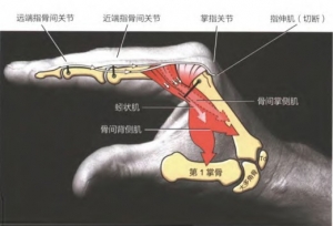 拇指上有两个关节,从远及近,分别是指骨间关节(小关节)、掌指关节(大关节),但其实我们要关注的还有腕掌关节,即拇指掌骨与手腕的衔接关节。拇指的大关节与小关节都是滑车关节,主要进行屈与伸的动作,决定拇指指向的是腕掌关节。