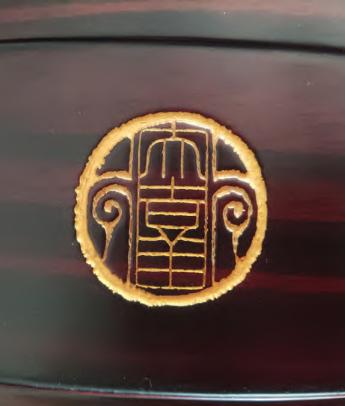 “大吉祥”筝的印章装饰基本都是内嵌于筝体,没有突起尖锐部分,不会对实用价值造成影响,比如,在一些曲子的演奏中,需要用手掌拍击筝头,称之为“拍板”,印章装饰不会干扰这一技法;反之一些追求华丽的筝,装饰凸起过高、边缘锋利,容易刮蹭甚至划伤手部,使演奏者分心,影响到演奏的连贯性与准确性。因此,古筝装饰不仅要考虑到美观,更要以演奏功能为先,实现乐器的实用价值与审美价值的统一。