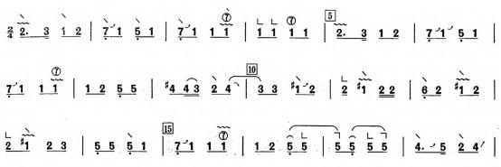 在河南筝曲的演奏中,左手运用按弦和滑弦技巧,频繁使用大二度、小三度的上、下滑音,使筝曲具有纯正的中州古调韵味。这是河南筝曲的重要特征之一。