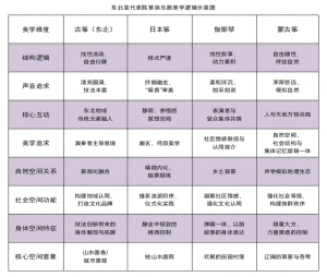 “再现、模拟、内化与抒情”分别对应了古筝、蒙古筝、日本筝、伽倻琴不同的自然观与美学逻辑。可见,蒙古筝、日本筝与伽倻琴虽与中国古筝同源,但其空间美学的表达因地理、文化差异而迥异。其所构建的核心空间意象根本上源于各国地方文化对自然、社会与身体关系的独特哲学认知,即对天(时间)、地(自然)、人(人际)关系的不同理解。这些“同源异流”的文化地理图景,昭示了音乐作为某一地区的“空间实践”,如何深刻承载并塑造着一个文明的世界观、人生观、价值观乃至生命观,为跨文化交流提供了丰富的互鉴灵感。