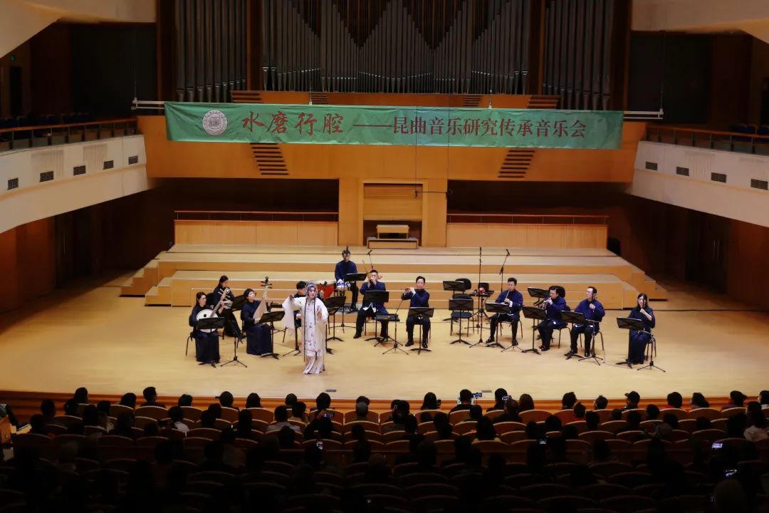 2022年4月13日,一场题为“水磨行腔”的昆曲音乐研究传承音乐会在北京音乐厅上演。音乐会中所奏十二首曲目中,除《皂罗袍》带有人声演唱外,其余均为器乐音乐作品。从昆曲器乐曲牌改编的《春日景和·万年欢》《朝天子·普庵咒·小开门·节节高·小拜门》《春日景和》,到十番细吹《到春来》《普天乐》,再到唱腔曲牌器乐化演绎下的《懒画眉》《朝元歌》《斗鹌鹑》《步步娇》《五转》,当昆曲音乐的和美徐徐显现,呈现在听众眼前的是一幅定格血脉精魂、不可复制的华彩瞬间。