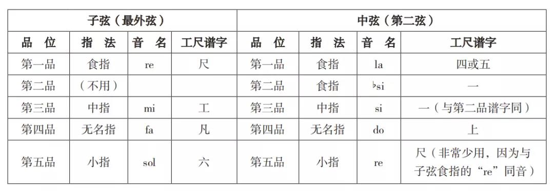表7 华氏《琵琶谱》正调子弦和中弦品位音高表